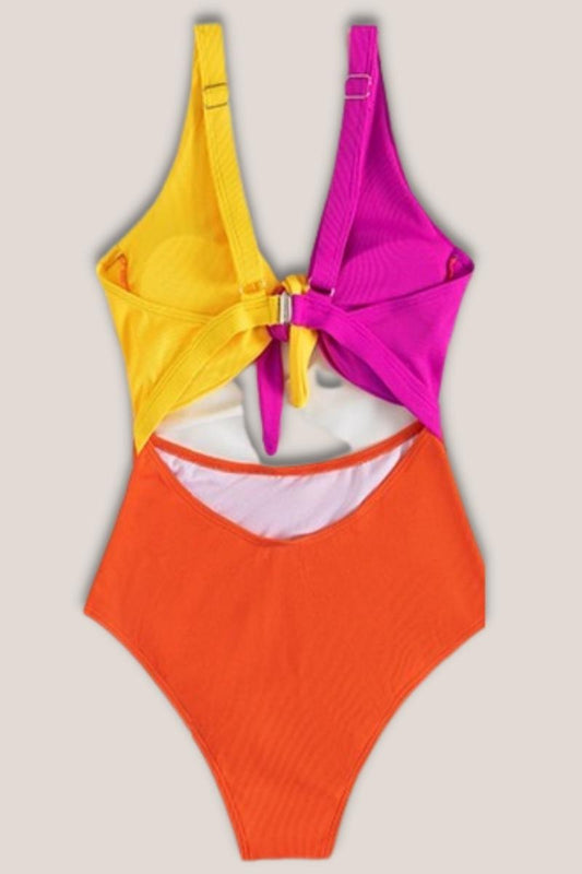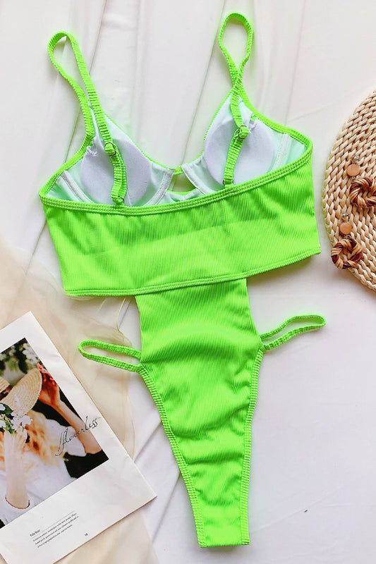 Green Ribbed Underwire One Piece Cut Out Swimsuit